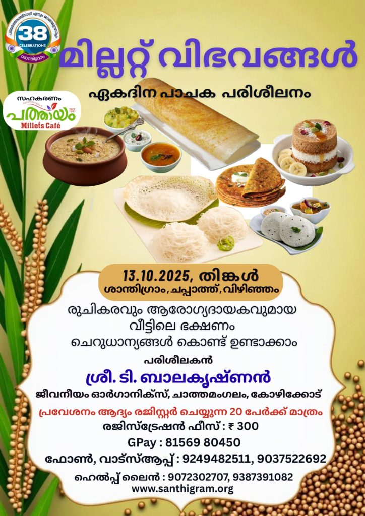 Santhigram, a Voluntary Development Organization, has been engaged in voluntary development interventions for more than a quarter of a century indiverse fields, including holistic health promotion, environmental protection, bio-farming, women empowerment, skill development. Currently the organization focused its interventions in the Panchayats of Kottukal, Kanjiramkulam, Karumkulam, Poovar and Venganoor in the district of Thiruvananathapuram and in the Vizhinjam Zone of the Thiruvananthapuram Corporation.